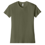 Next Level Women's 4.3 Ounce CVC Relaxed T-Shirt. 60/40 ring-spun cotton/polyester, 32 singles, 4.3 ounce. Relaxed fit. 1 x 1 baby ribbed collar. Side seams. Tear away label.