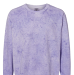Comfort Colors Adult 9.5 Ounce Color Blast Crew Sweatshirt. 9.5 oz/sqyd of 80% Ring Spun U.S. Cotton. 20% Polyester. 3-end garment dyed soft ring spun Color Blast fleece, with a 100% cotton face. 1X1 rib collar, with twill taped neck and shoulders. Rolled forward shoulder with back neck patch. Relaxed fit, side seamed body, with signature twill label. Color Blast is a pigment dye technique that yields a unique color and Color Blast effect on every garment. We do not guarantee consistency amongst individual garments.